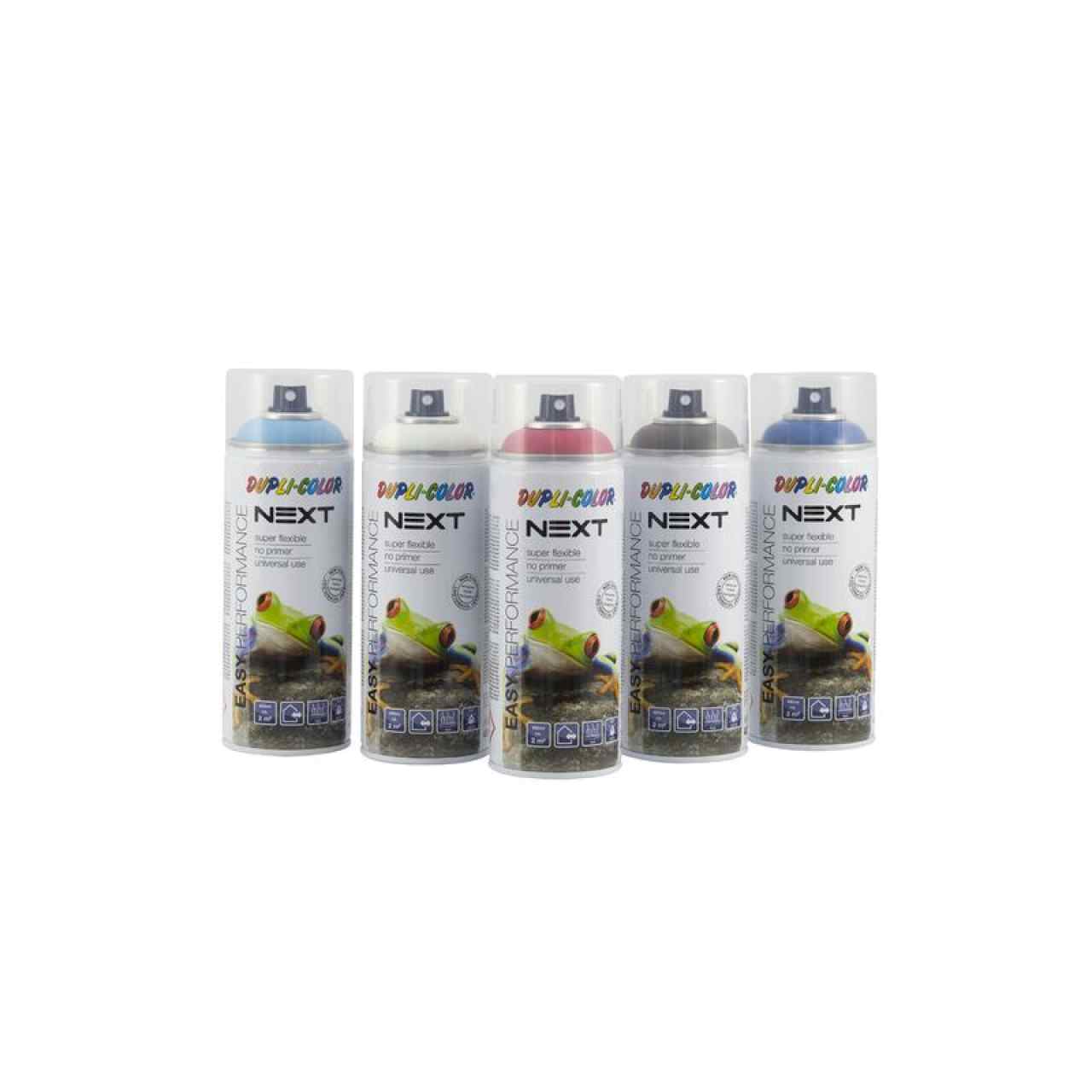 Innovatív sprayfesték a nagyon kényelmes felhasználás és a megbízható eredmény érdekében. A semleges szag és az alacsony sprayköd képződés kombinációja lehetővé teszi, hogy még enyhén szellőztetett helyiségekben is felhasználható legyen. Gyorsan száradó minőségének és sokféle felületen való tökéletes tapadásának köszönhetően - még speciális alapozó használta nélkül is - a DUPLI-COLOR NEXT számos dekorációs, hobbi és kézműves célú felhasználást tesz lehetővé, akár művészek számára is.